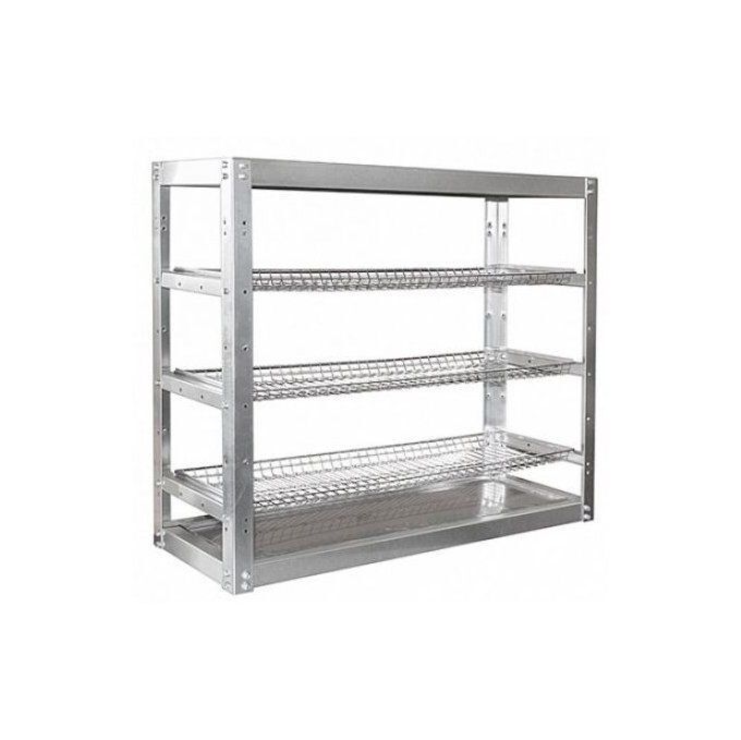 Стеллаж для стаканов ЭКОНОМ выполнен из оцинкованного разборного каркаса. Полки в виде стальной хромированной сетки. Под нижней полкой установлен поддон для сбора жидкости из нержавеющей стали. Изделие поставляется в разобранном виде.
