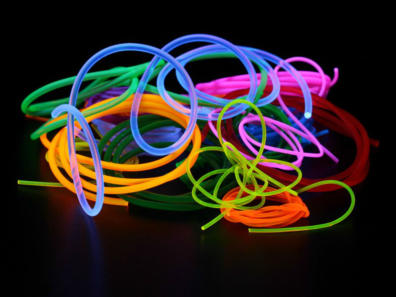 Гибкий пластиковый шнур 2-4 мм, светящийся яркими цветами в ультрафиолетовом свете лампой Black Light.
